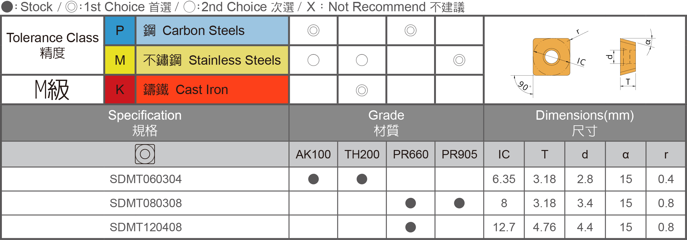 ▼Recommended Inserts : KENNAMETAL / KYOCERA / ACC